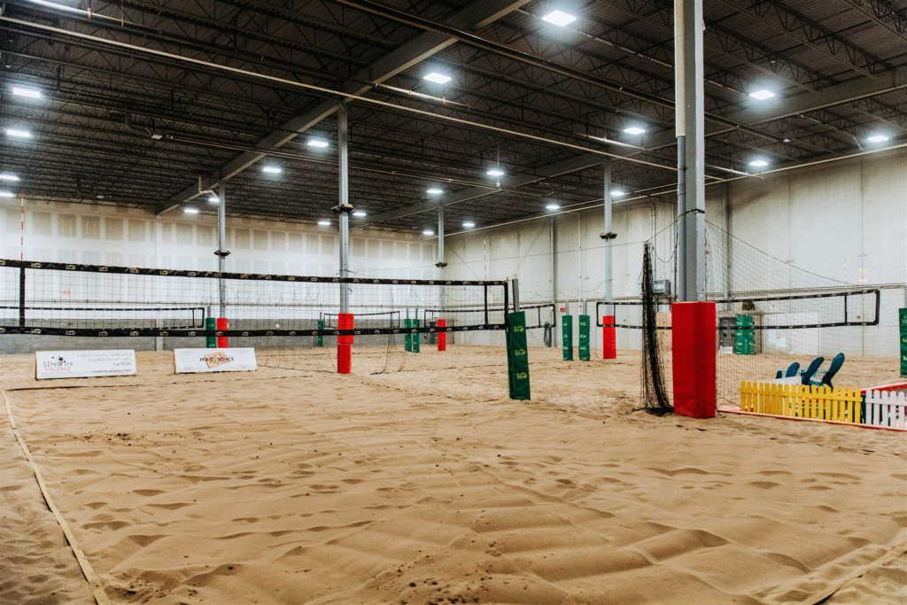 • Professional-grade indoor sand courts that replicate the outdoor beach experience.