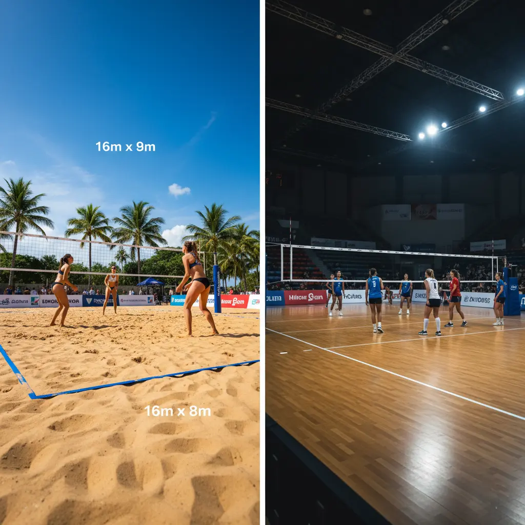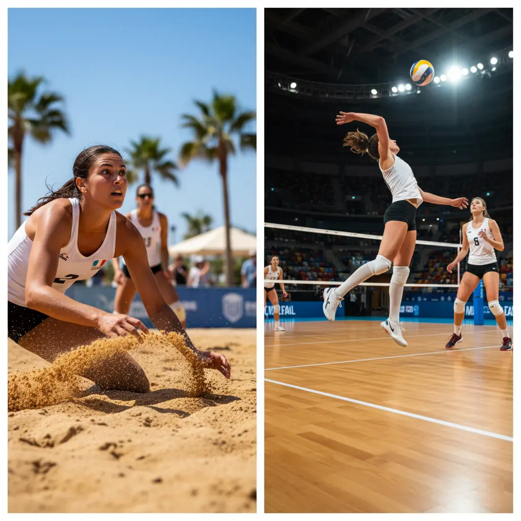 Because sand absorbs energy, beach volleyball requires greater strength and endurance, while indoor volleyball rewards speed and explosiveness.